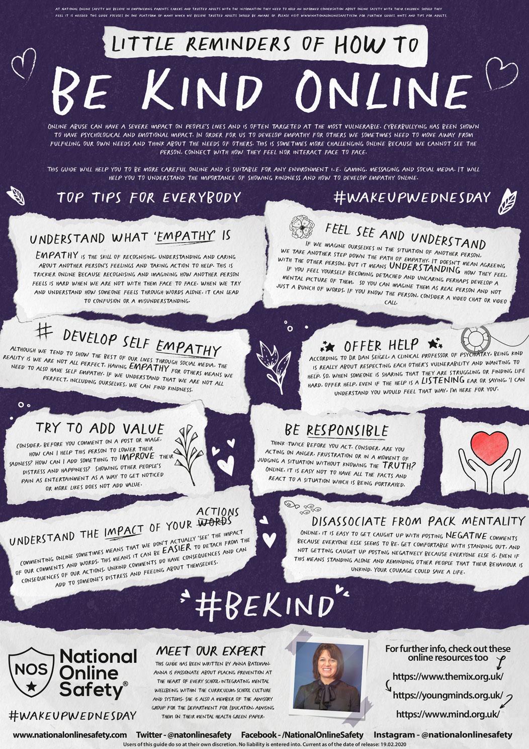 Remember to keep your behaviour online positive by applying the same rules of respect, courtesy and acceptance you use in person when you are online.