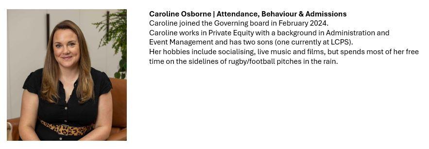 Performance Review Governors (PRG) = Simon Barrett & Caroline Osborne.