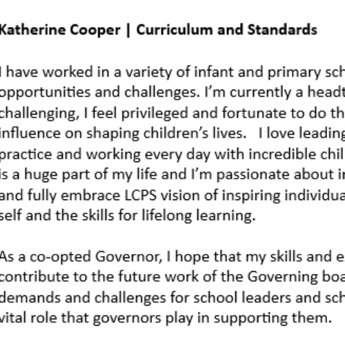 All parents and carers of registered students are eligible to become Parent Governors. The usual term of office is four years from the date of appointment. If you would like to put your name forward, please email office@littlechalfont.bucks.sch.uk FAO: Mr Hacking. Please include a statement stating why you would like to be a governor (no more than 150 words).